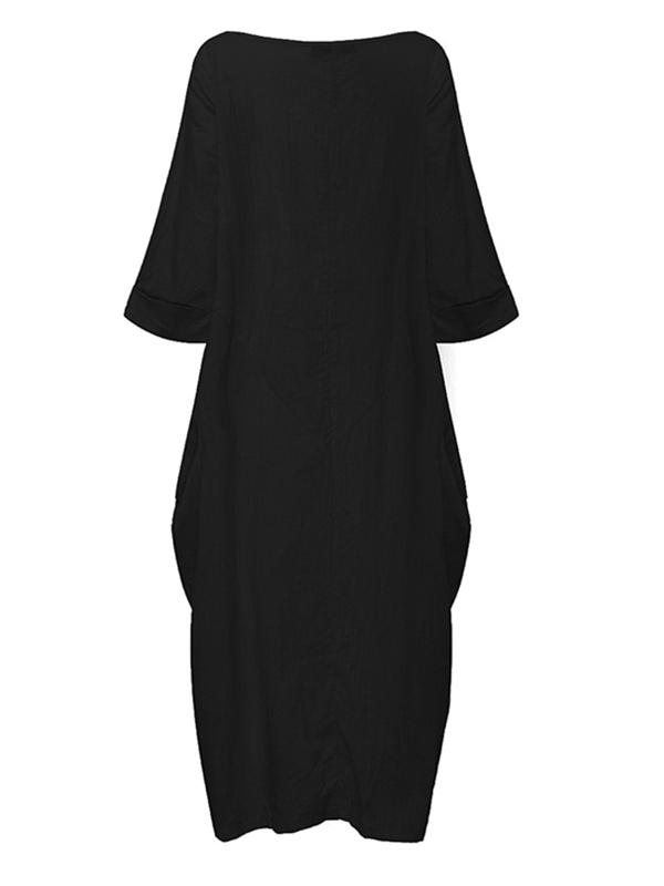 ZANZEA Women Crewneck 3/4 Batwing Sleeve Baggy Maxi Long Shirt Dress Casual Party Kaftan Solid Robe Vestido Plus Size