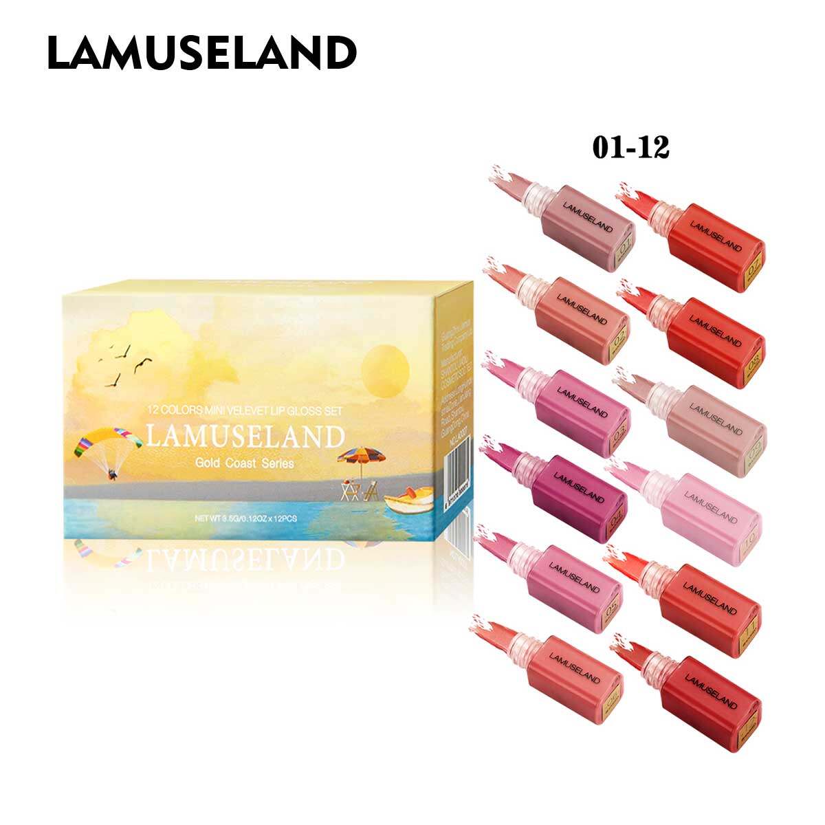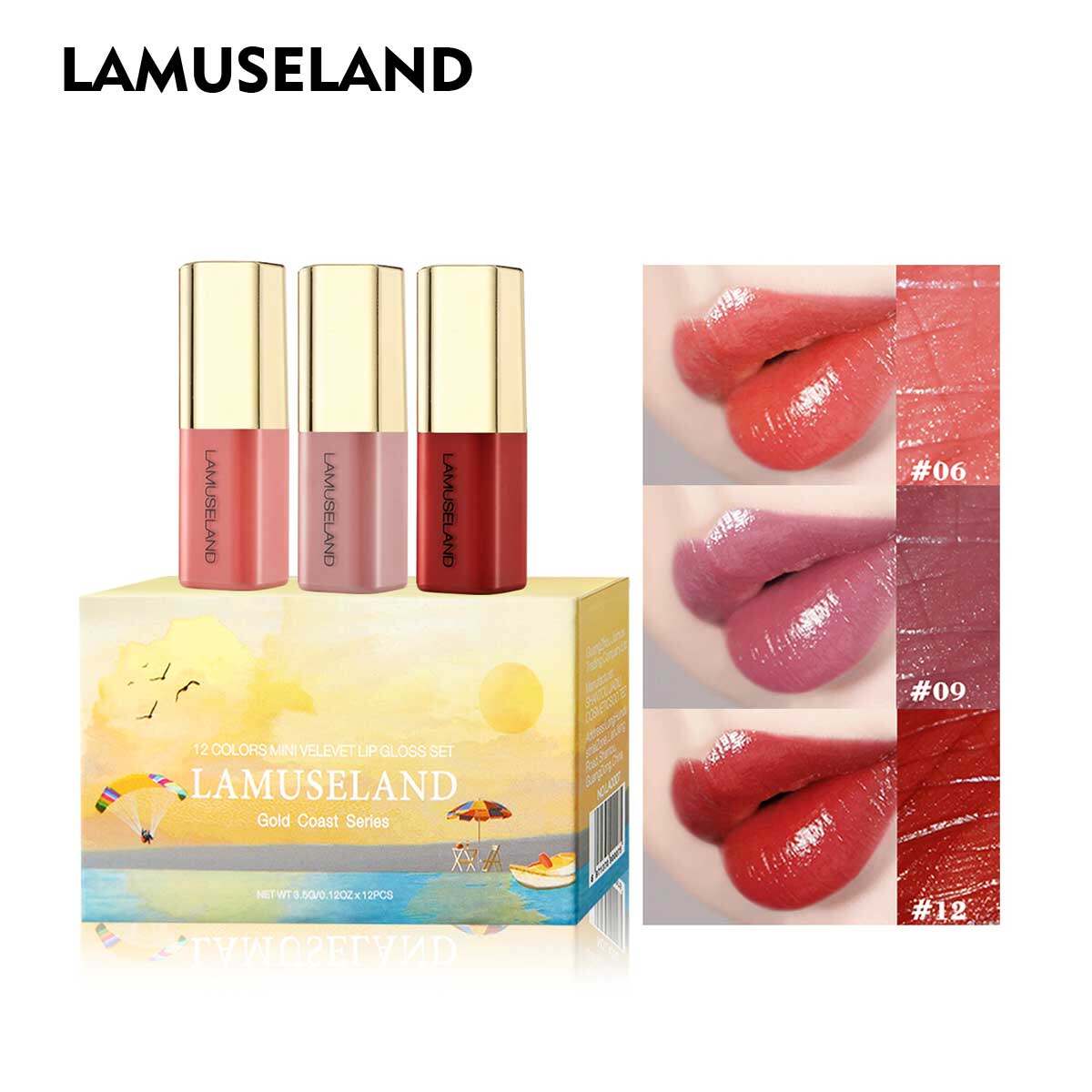 LAMUSELAND 12Colors/Set Travel Kit Lasting Lipstick Matte Mini Lip Gloss #L18L12/LA0007