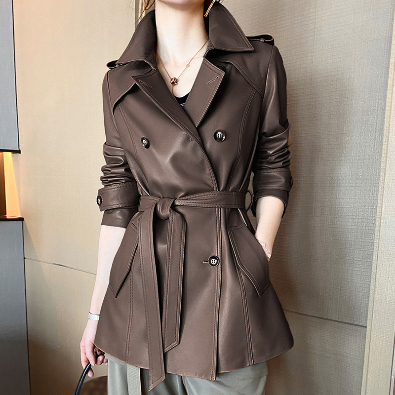 New Trench Coat Sheepskin Leather Shirt Long Bomber Jacket Genuine Leather Jacket With Belt