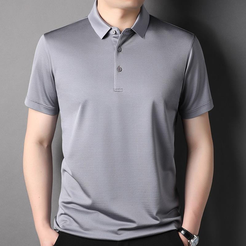 Factory Wholesale Men's Luxury Natural Material Solid Silk Polo Shirts 5 Colours