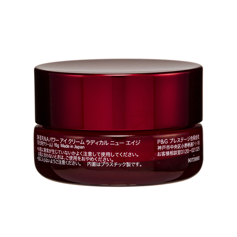 SK-II R.N.A. Power Eye Cream Radical New Age (15g) With the exclusive anti-aging and revitalizing ingredients – R.N.A. Complex and Pitera™, skin on eye contours are deeply nourished and free from wrinkles and fine lines, becoming youthful and radiant.Product Features:• Radical New Age Complex: with water-soluble soya proteins and yeast proteins, this eye cream helps to reinforce the collagen network for an extraordinary firming and lifting effect.• Skin revitalizing: with the signature Pitera™, implementing with chlolleragen, skin is nourished and restored to a soothed and balanced skin condition.• Lightweight texture: it is airy and penetrates skin fast for an instant and constant nourishment.Ingredients :• Radical New Age Complex: firming