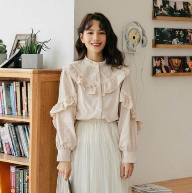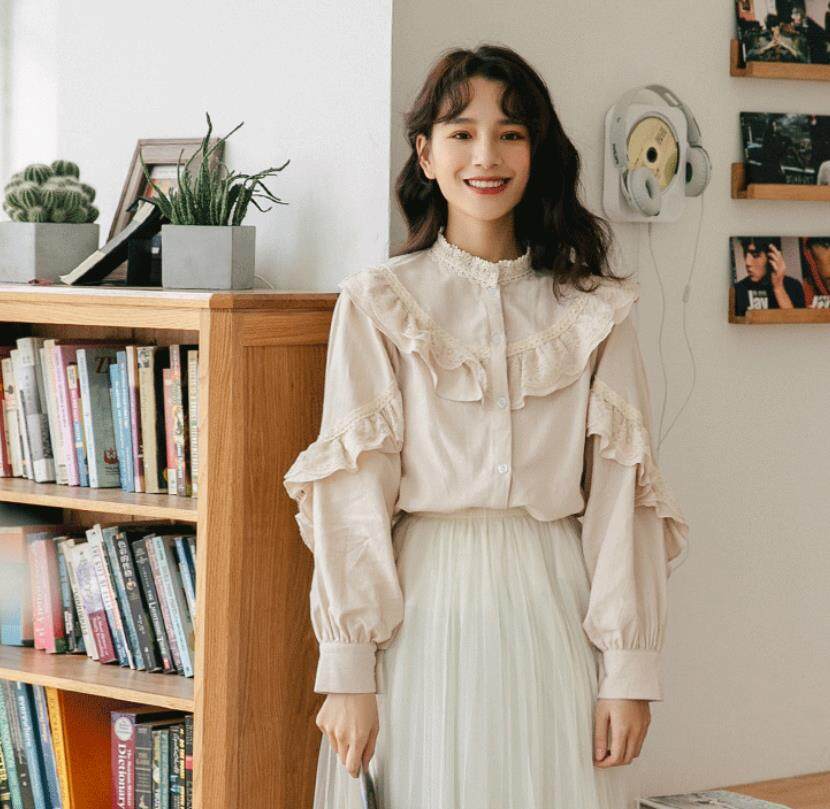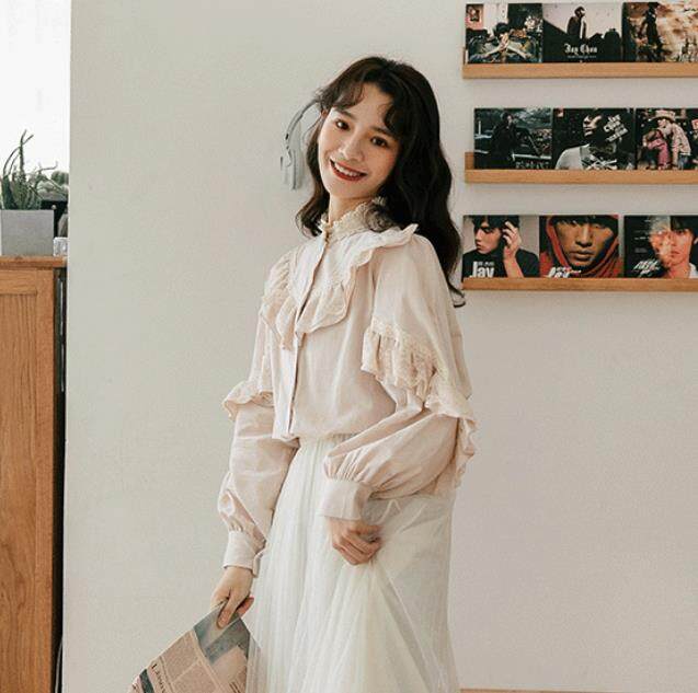HolidayQueen Spring 2021student sweet lace shirt all-matching fresh shirtWomen's clothin HQT102073
