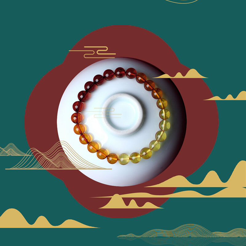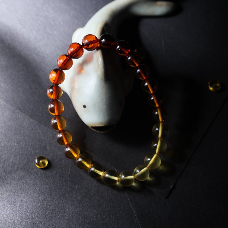 Glow Southern Women's Natural Raw Ore Water Purification Amber Beeswax Flower Amber Gold Amber round Beads Buddha Beads Bracelet Bracelet