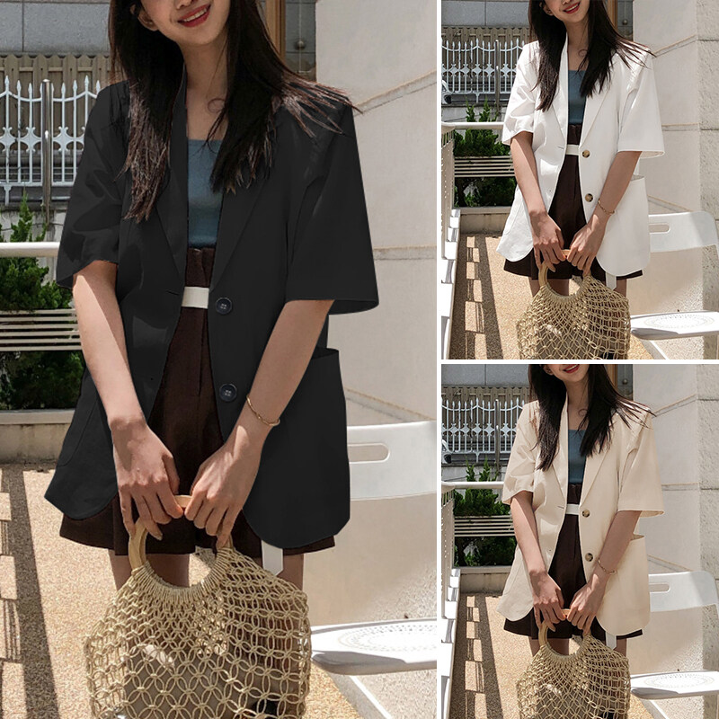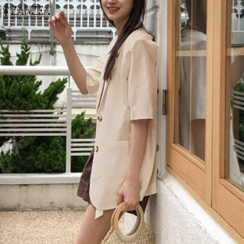 ZANZEA Korean Style Women Summer Solid Blazer Coat Outwear Half Sleeve Buttons Down Suits