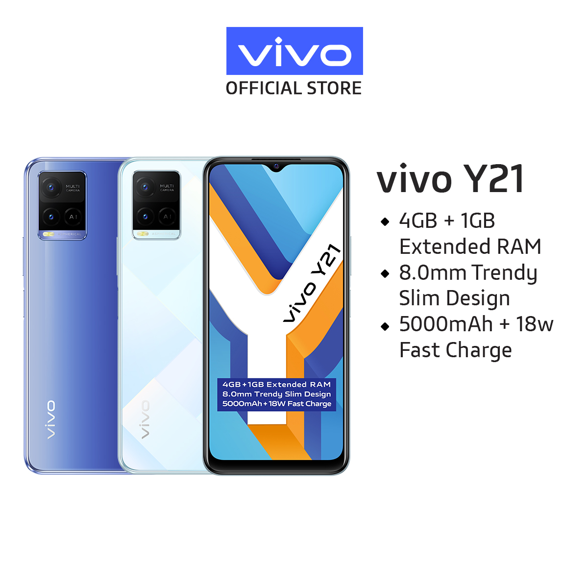 vivo Y21 [4GB+1gb/64GB] / 5000mAh + 18W Fast Charge/ AI Rear Camera System/ 8.0mm Trendy Slim Design【2 YEARS WARRANTY】