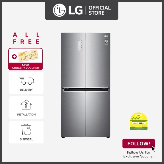 [[Bulky] LG GF-B4539PZ French Door fridge, 464L, Platinum Silver + Free Delivery + Free Installation + Free Disposal + Free $100 Grocery Voucher