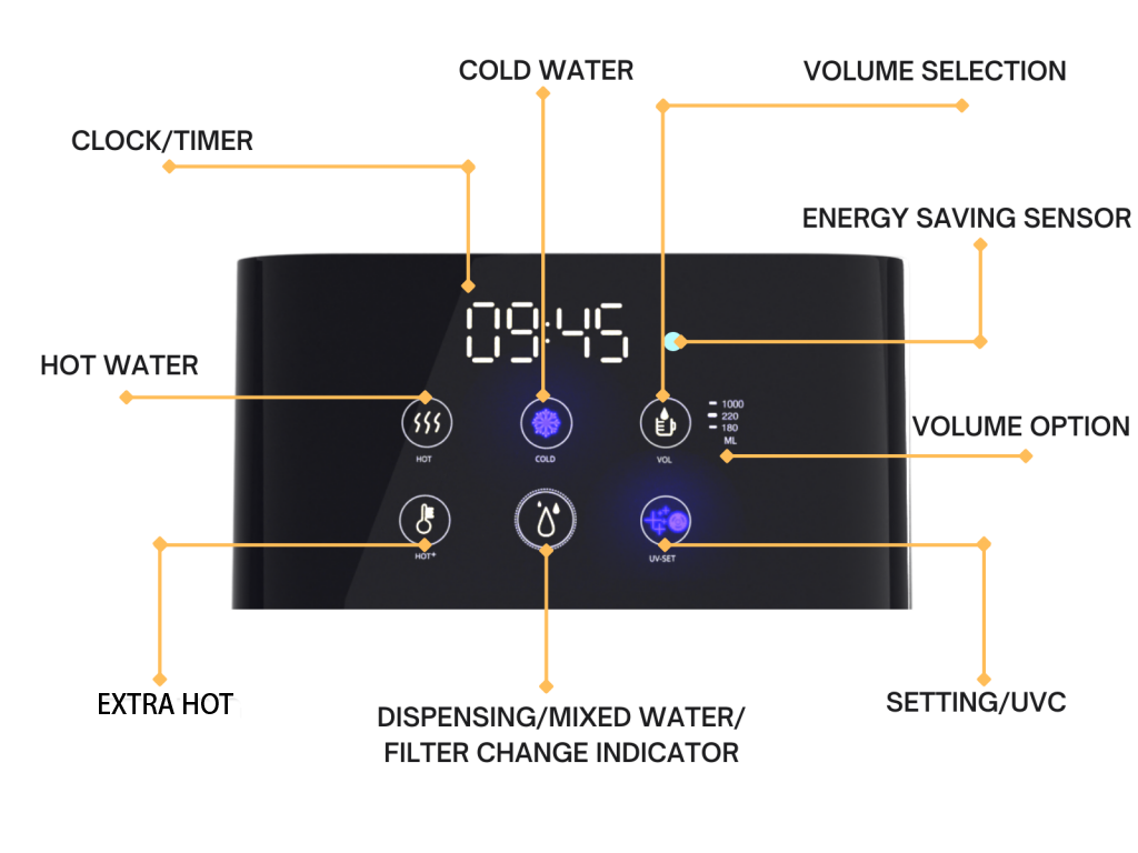 Instantly dispense Hot, Lukewarm and Cold water