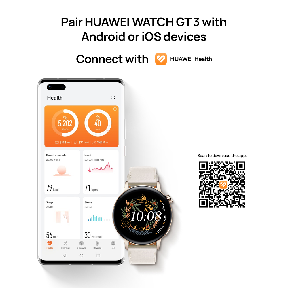 HUAWEI WATCH GT 3 42 mm Smartwatch, 1.32inches AMOLED Colour