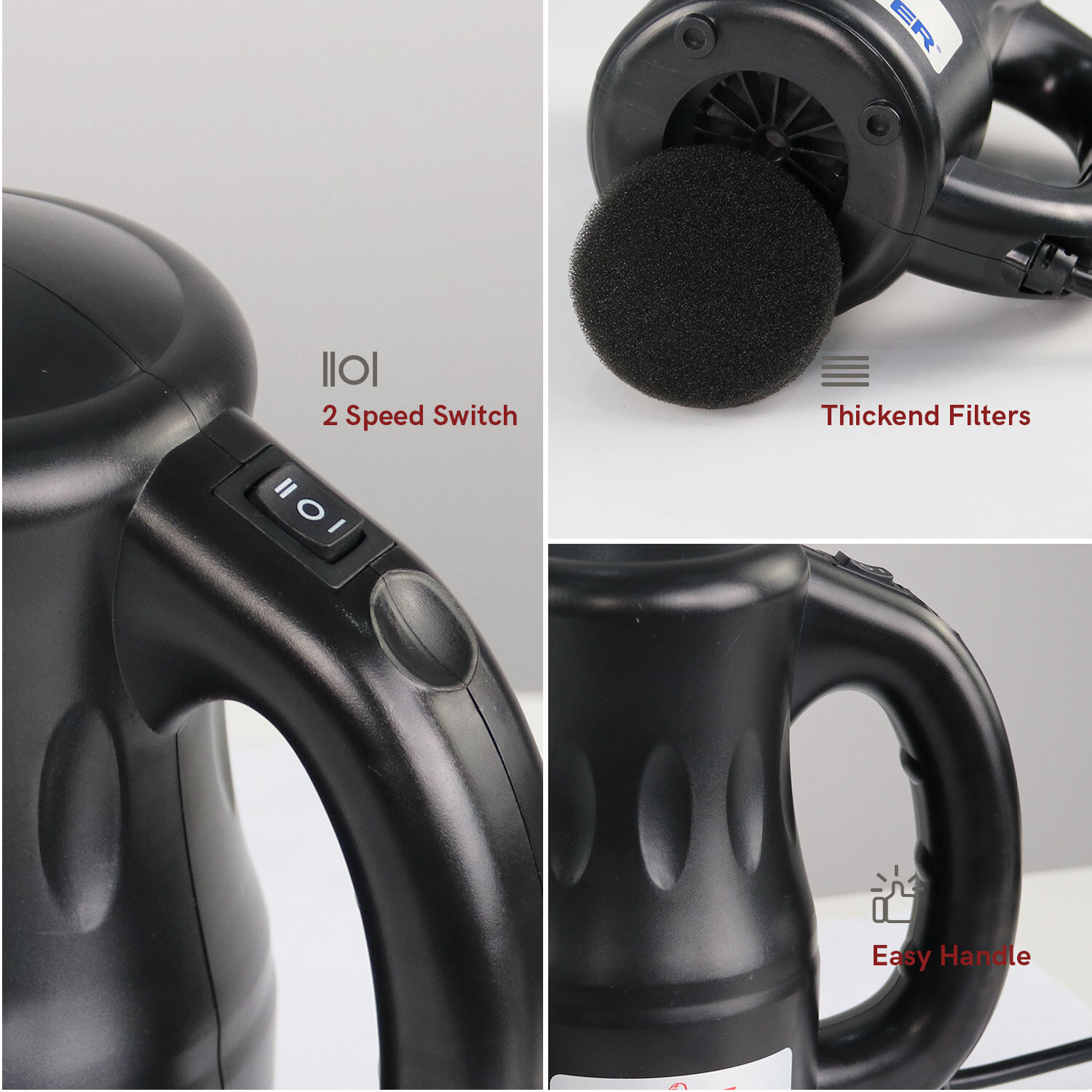 • Simple Operation & Lightweight : Built-in 2-speed control adjustment switch for easy to use, Hand-held air duster allows us to operate in anywhere with a weight of only 1 kg