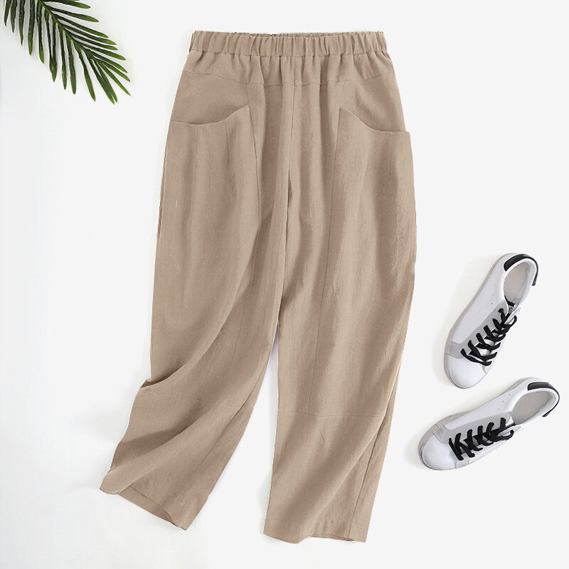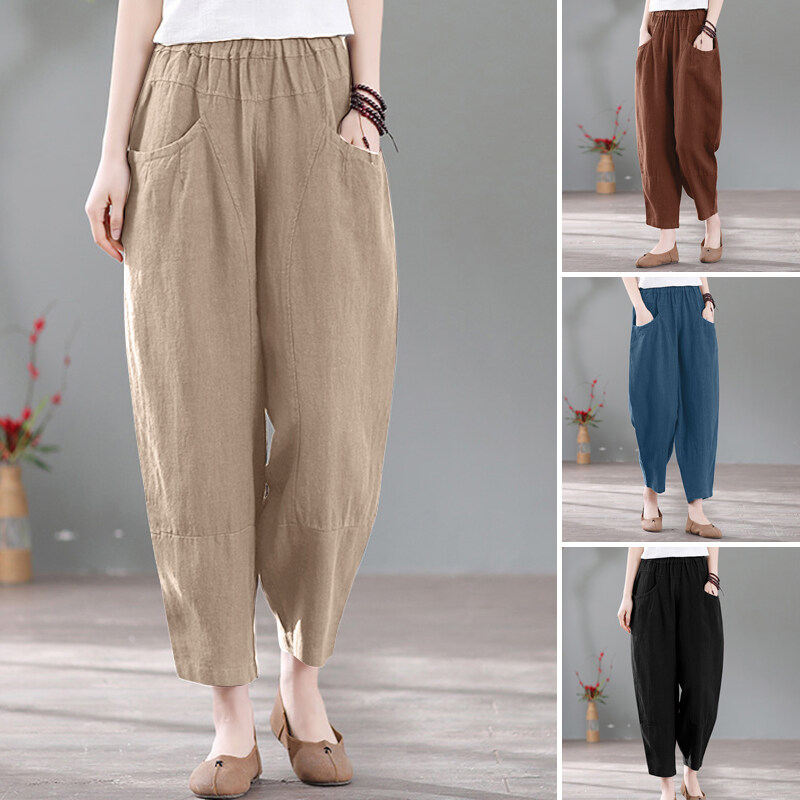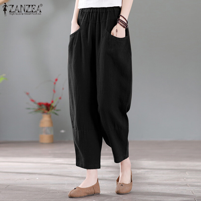 ZANZEA Women Summer Cotton Loose Harem Pants Retro Casual Slacks Long Trousers