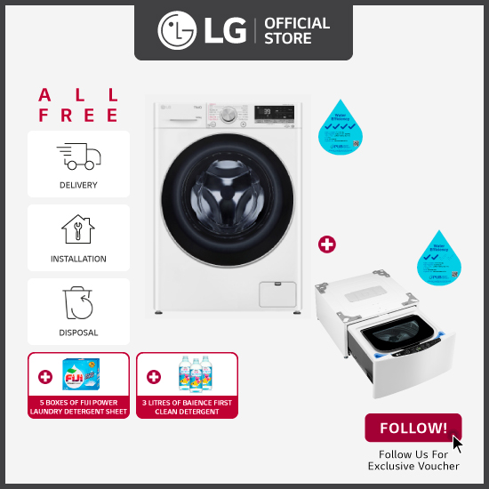 [Bulky] LG FV1410H3W 10/6KG, Front Load Washer Dryer, White + LG Mini Washer TV2425NTWW 2.5kg Blue White + Free Delivery + Free Installation + Free Disposal