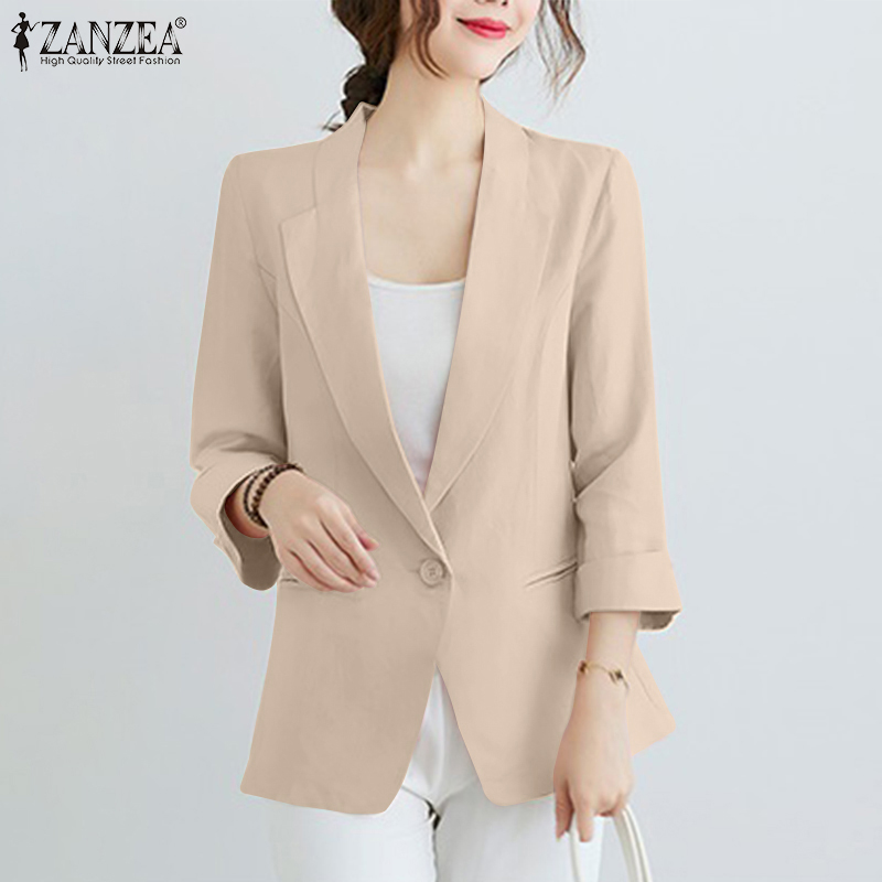 ZANZEA Women Casual Cotton Linen Blazer Jacket Top Ladies Loose Button Up Lapel Coat #11