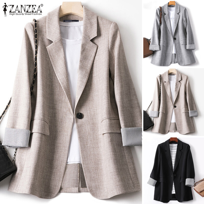 ZANZEA Women Elegant Commute Long Sleeve Blazer Lapel Formal OL Loose Versatile Suits #2