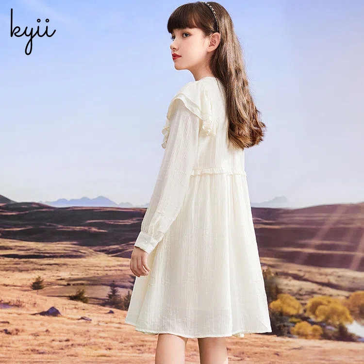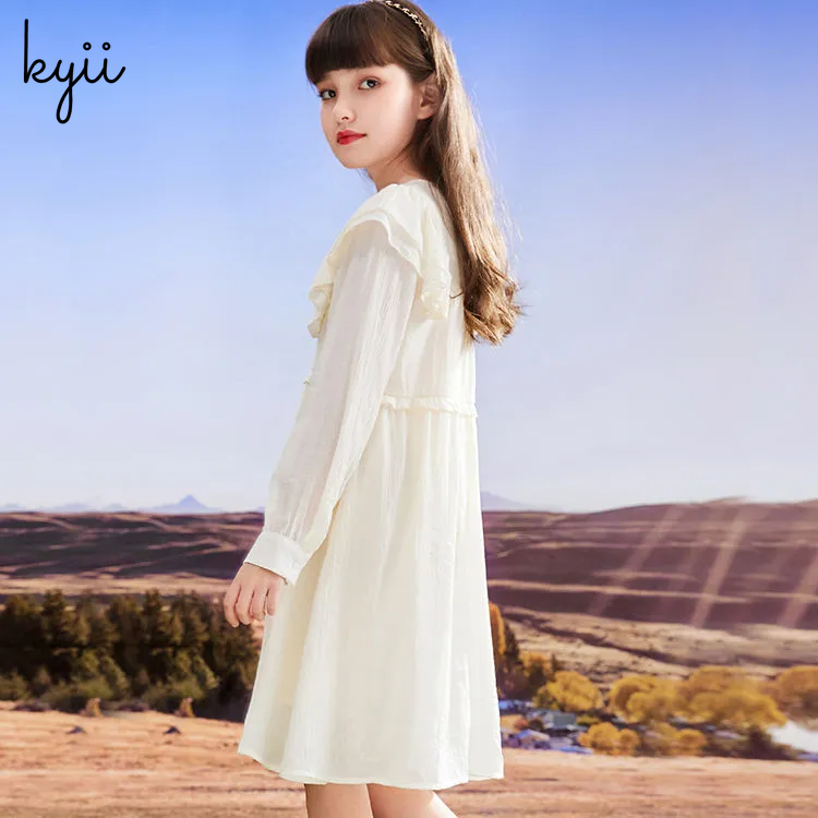 KYII Kids Girls Summer Round-neck Dress Casual Loose Long Sleeve Dress kyii0046