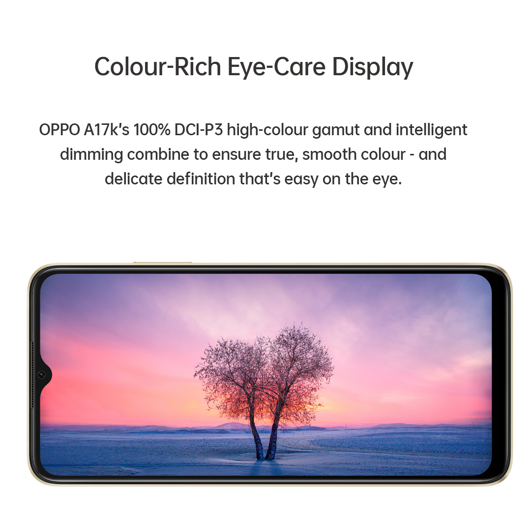 OPPO A17K / IPX4 Water-Resistance / 5000mAh Long Lasting Battery / Side Fingerprint Unlock / 4GB Extended RAM