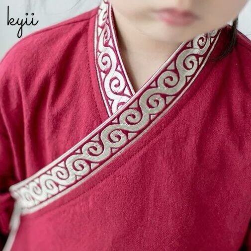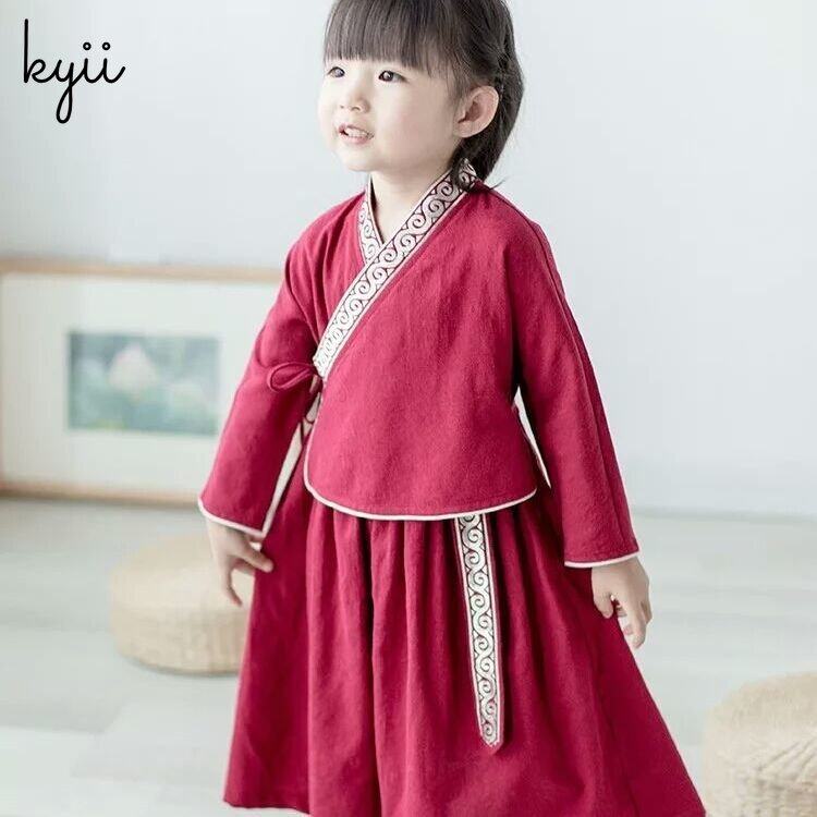 KYII Kids Girls V-Neck Dress Casual Loose Long Sleeve Dress kyii0086
