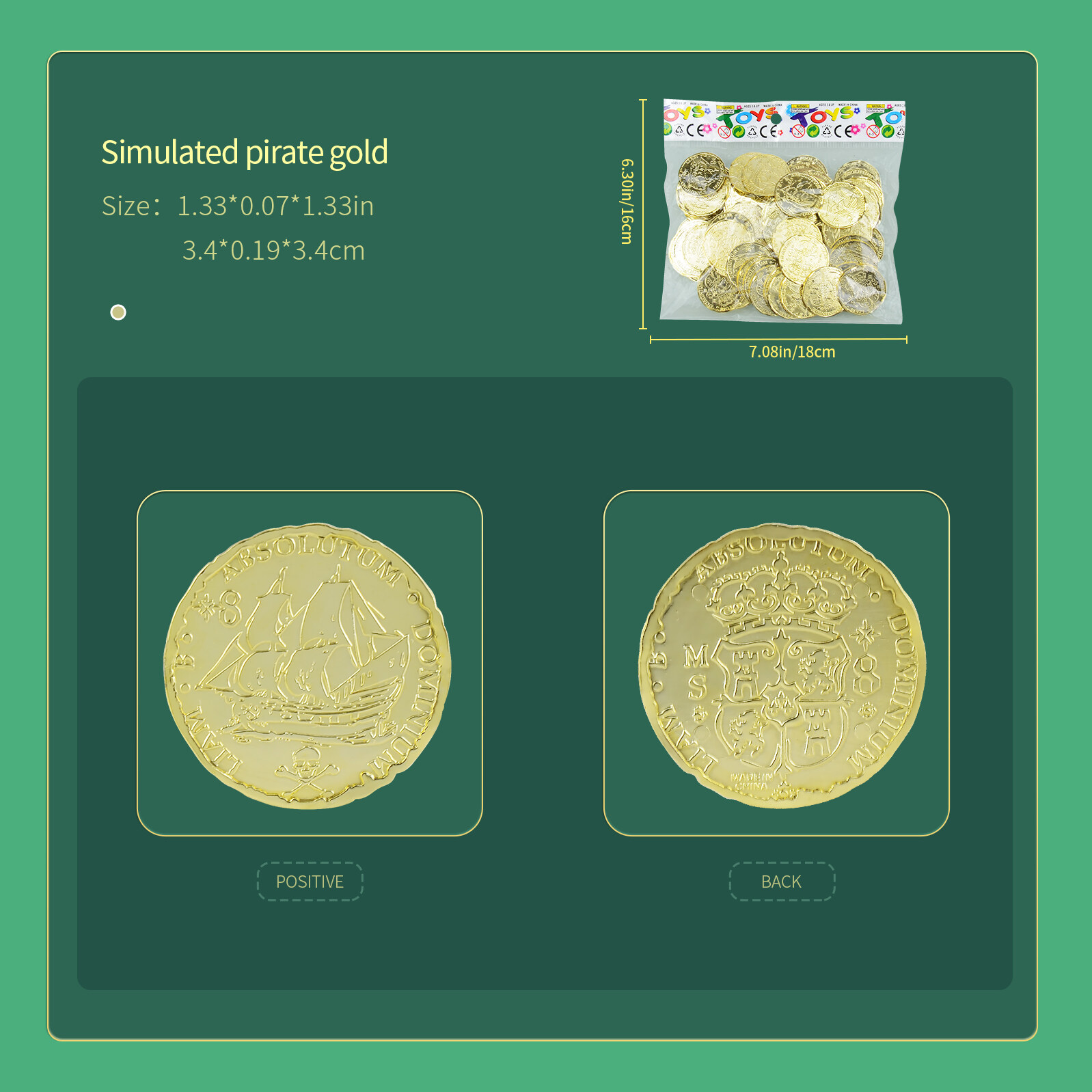 【100pcs】HYG gold coin toy simulation gold coin pretending to be a family game prop cartoon coin Pirate gold coin good Pirate Gold Coins help children to learn mathematics scene simulation game boy and