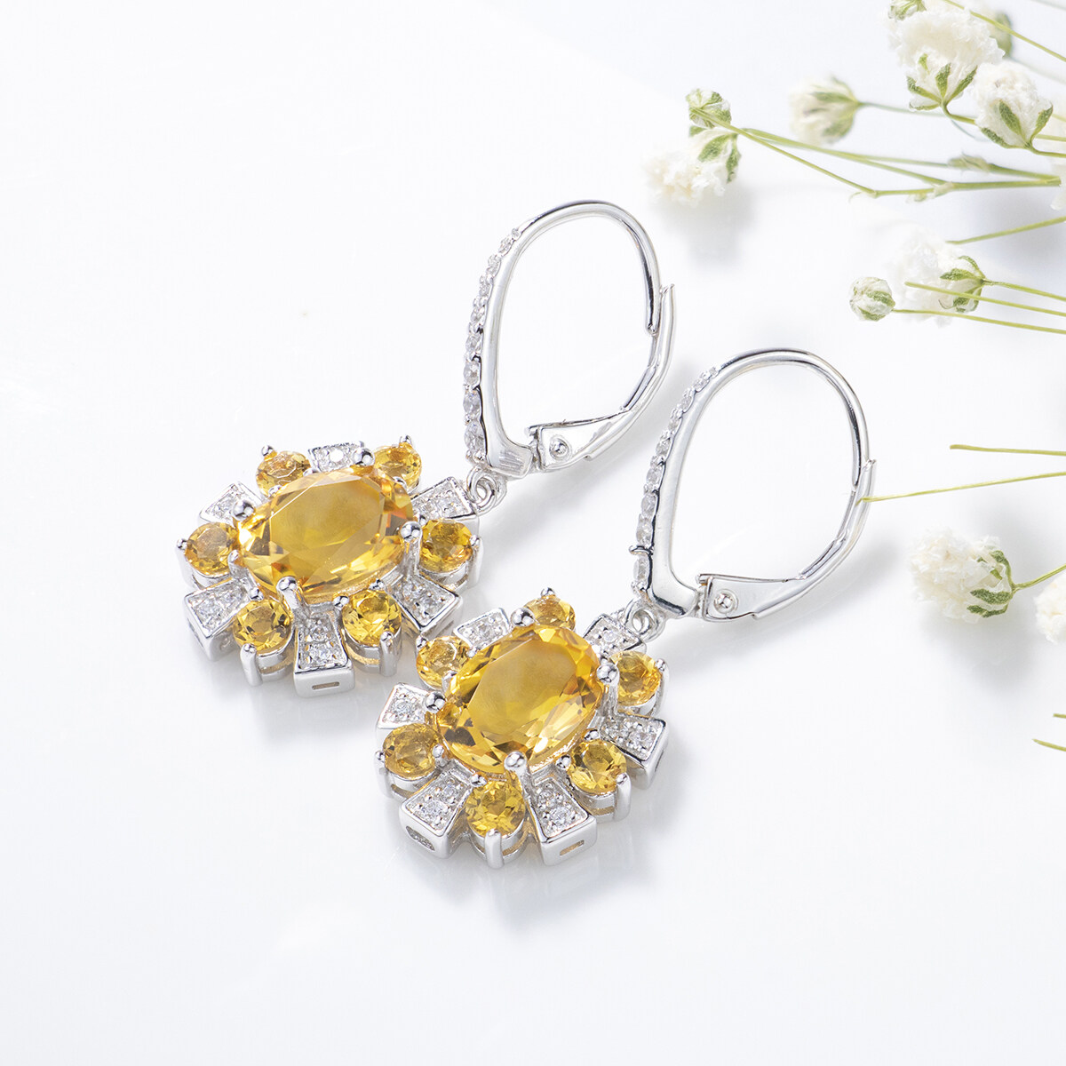 Sterling Silver S925 Original Drop Earrings Natural Topaz Genuine Gemstone Women Top Quality Coloful Jewelrys Wedding