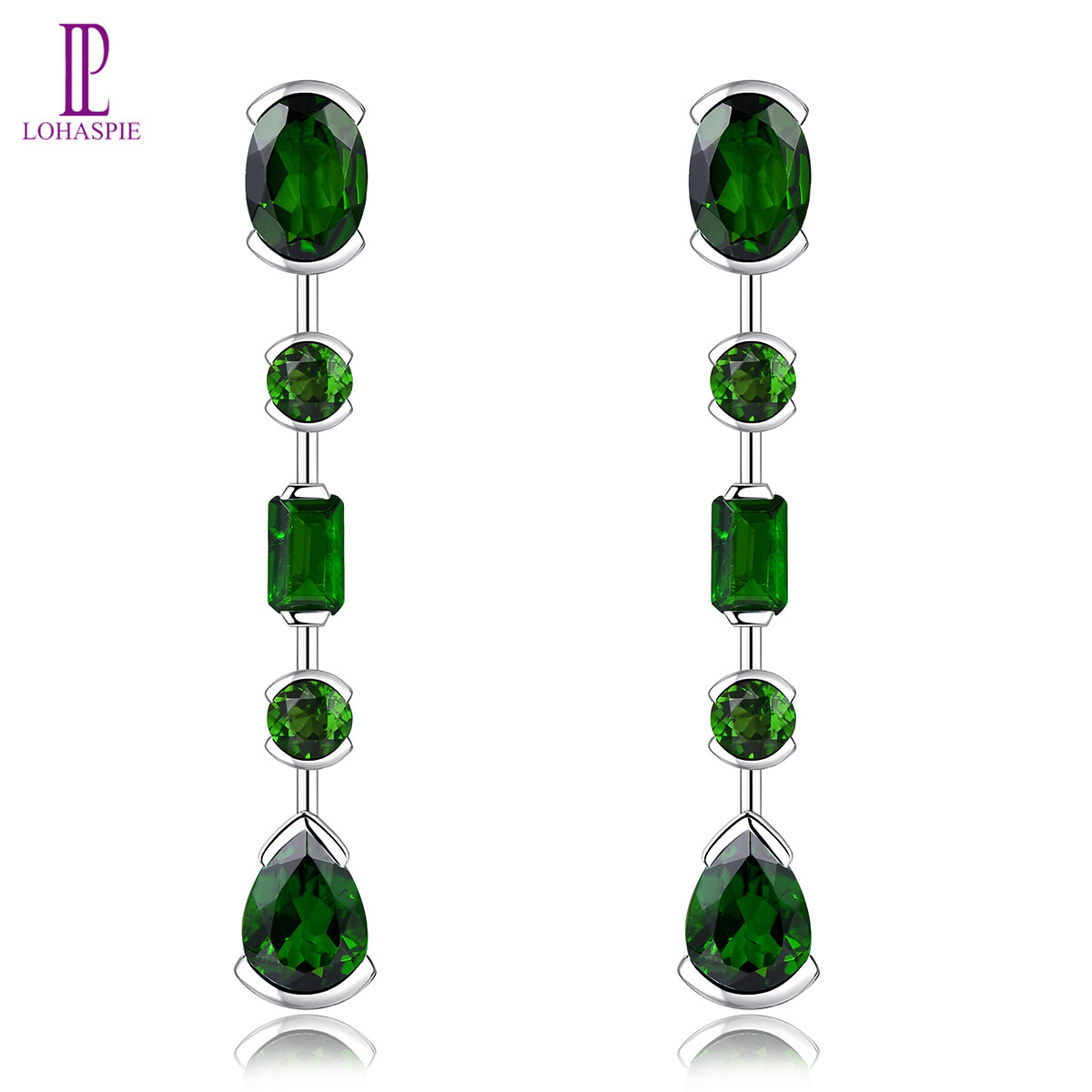Lohaspie Jewelry Genuine 3.5 Carats Drop Earring Silver 925 Original Natural Chrome Diopside Drop Earring Green Gemstone Earings For Women Birthday Gift Jewelry
