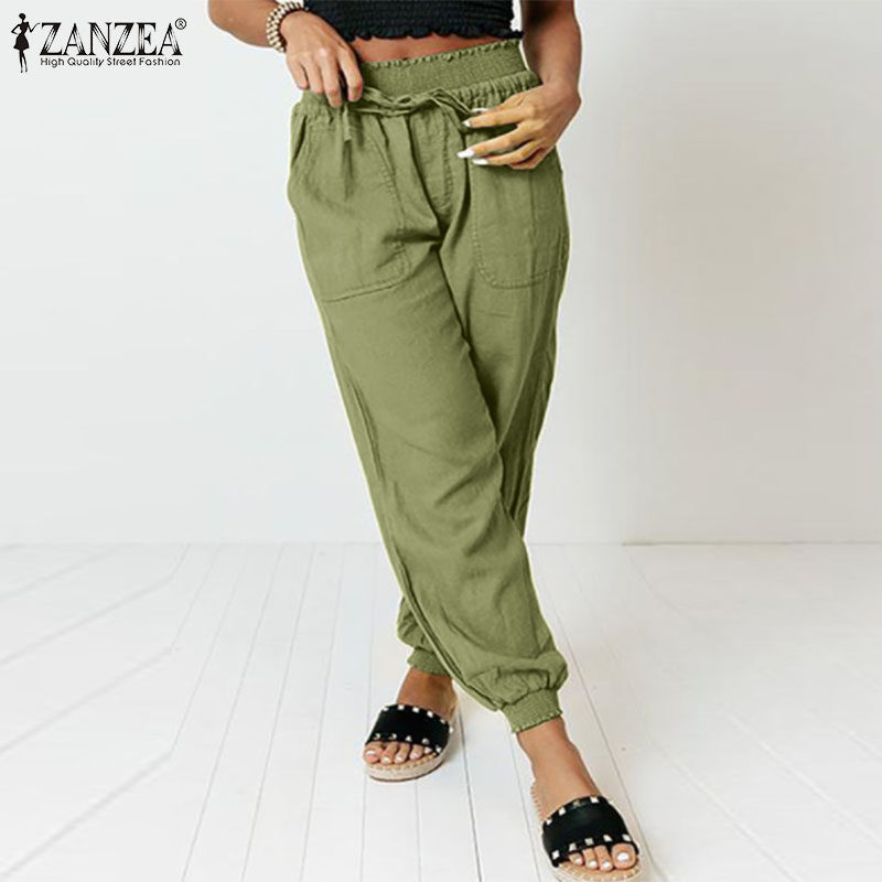 [Clearance Sale] ZANZEA Women's Legging Loose Wide Leg High Waist Pants Casual Wrap Trousers Plus CLE #1