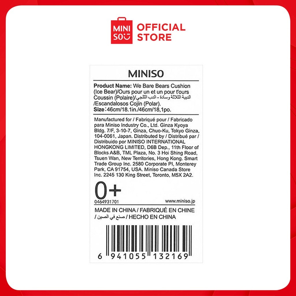 Miniso We Bare Bears - Cushion Plush Stuffed Toy Hand Insert Inside For Kids Gift Pillow